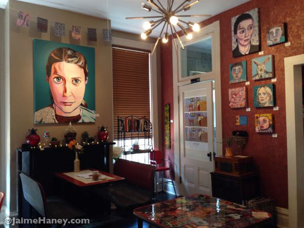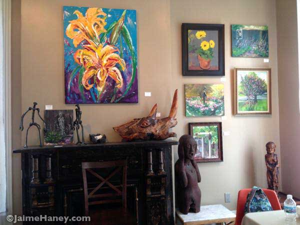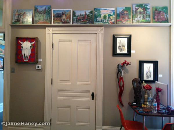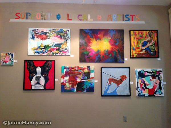 I was in a hurry to make a dentist appointment for my son and didn’t get quite the photographs I was hoping for including the beautiful outside, but I plan to go back and attend more lunch and learn at staC Art Gallery. Click on my links I added to see his gallery and renovation. I asked what the pronunciation of the gallery was and found out that it’s really cats spelled backwards! (So I think it’s just pronounced Stack). When Ted bought the property and before he could renovate it, he had to wrangle up all the cats that called the house home and get them along with their odor out of there! I loved the name he picked for the gallery.