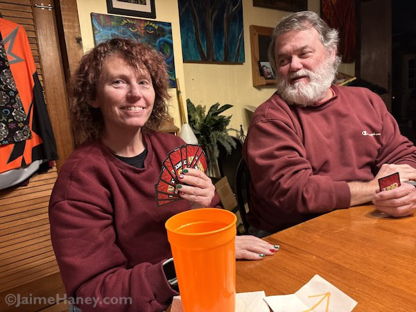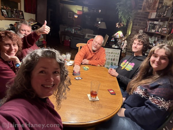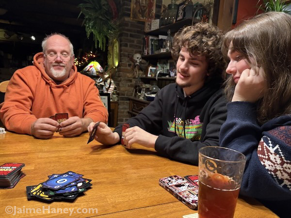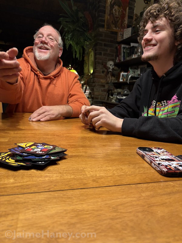 Speaking of cards… We’re playing UNO No Mercy in these pictures. We also play Euchre on the regular but UNO No Mercy is quite fun and a good game to break up the rounds of Euchre.