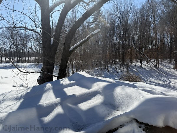 In my area, we got about 12.5 inches of snow. This is a lot of snow, especially at once, for us. It arrived a week ago and with the frigid temps near zero each night so it’s still here. Wreaking havoc.